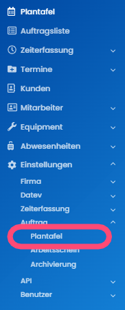 Klicke hierzu einfach in der Menüleiste auf Einstellungen --> Auftrag --> Plantafel