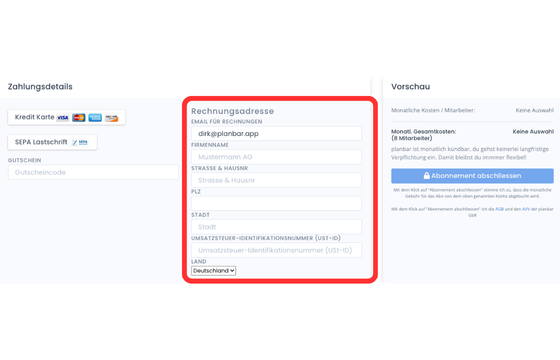 Du kannst deine Rechnungsadresse jederzeit selbst anpassen.